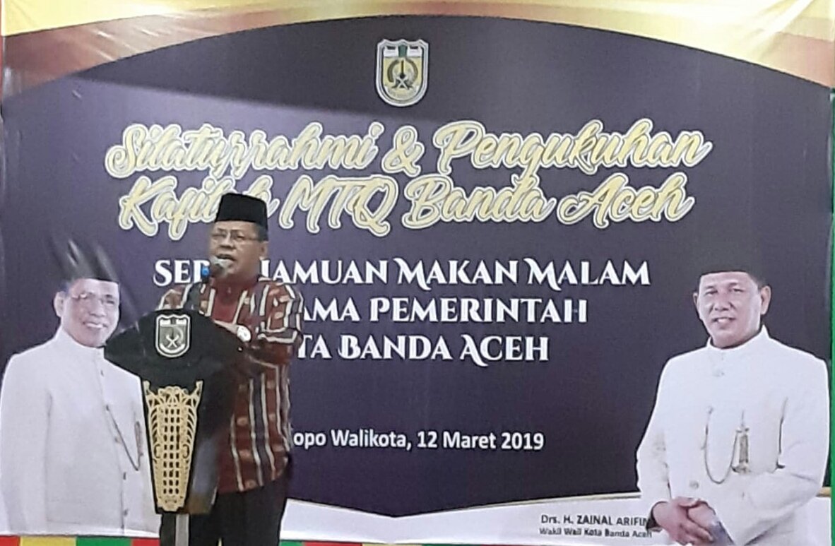 SANTERDAILY.COM | BANDA ACEH——Pemerintah Kota (Pemko) Banda Aceh menggelar silaturahmi dan jamuan makan malam dengan kafilah MTQ Banda Aceh di pendopo walikota, Selasa (12/3/2019) malam.