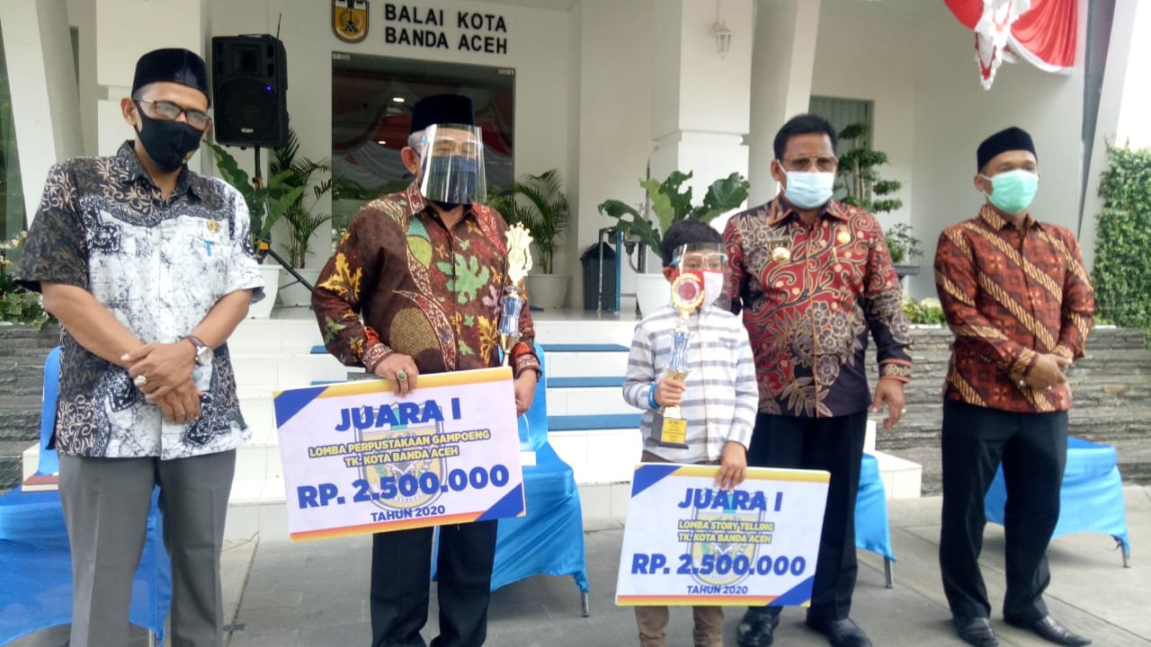 Sehubungan dengan itu, Aminullah juga memberikan penghargaan kepada Juara 1 lomba story telling dan lomba perpustakaan tingkat Kota yang telah dilakukan sebelumnya oleh Wali Kota Banda Aceh di halaman Balai Kota setempat.
