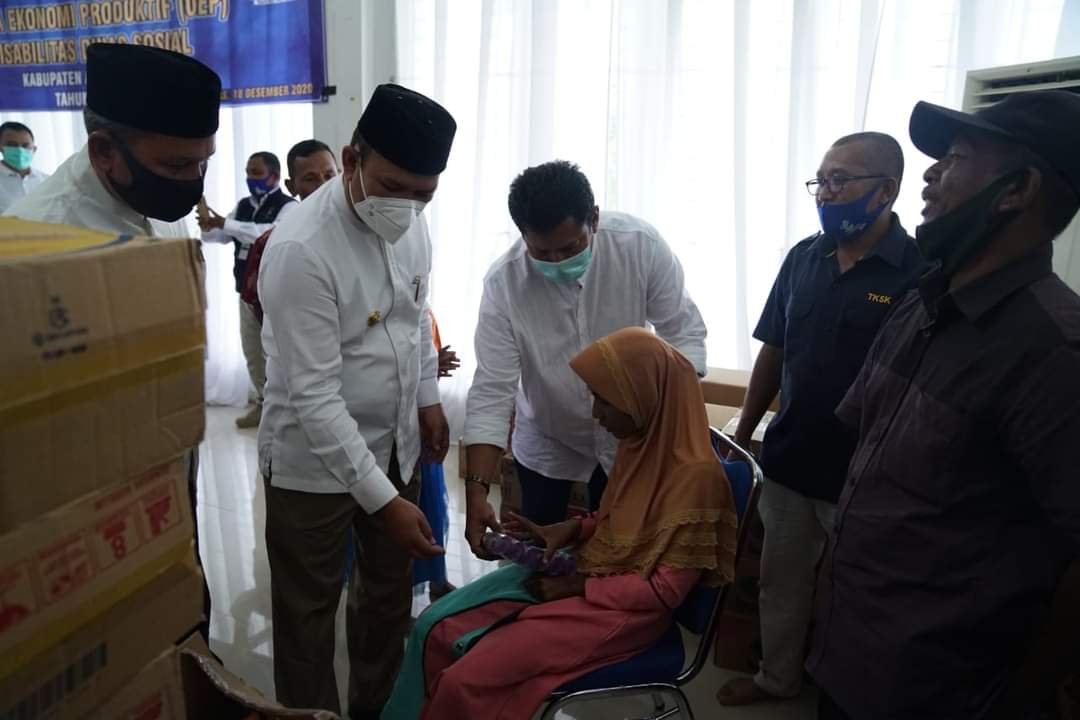 Aceh Besar, – Pemerintah Aceh Besar menyerahkan bantuan usaha ekonomi produktif (UEP) secara simbolis kepada 100 orang penyandang disabilitas di Gedung Dekranasda, Desa Ghani Kecamatan Ingin Jaya, Jum’at 18 Desember 2020.