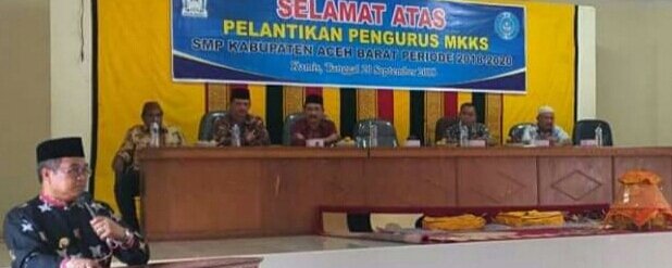 SANTERDAILY.COM | ACEH BARAT – Bupati Aceh Barat H. Ramli MS melantik pengurus MKKS SMP Aceh Barat pada hari Kamis 20 September 2018 di Aula Dinas Pendidikan Aceh Barat.