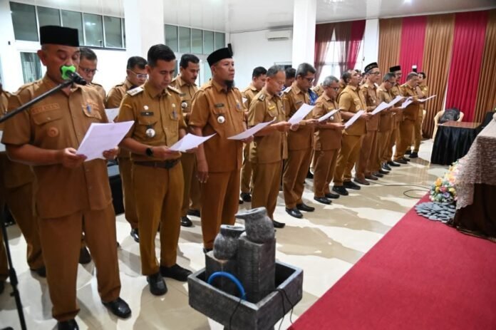 KABARDAILY.COM,KOTA JANTHO – Bupati Aceh Besar, H Muharram Idris (Syech Muharram), meminta seluruh Organisasi Perangkat Daerah (OPD) dan para camat di wilayahnya untuk saling membahu dalam membangun daerah serta memberikan pelayanan terbaik kepada masyarakat. Syech Muharram menekankan, pentingnya bekerja dengan penuh tanggung jawab dalam menjalankan amanah yang diberikan.