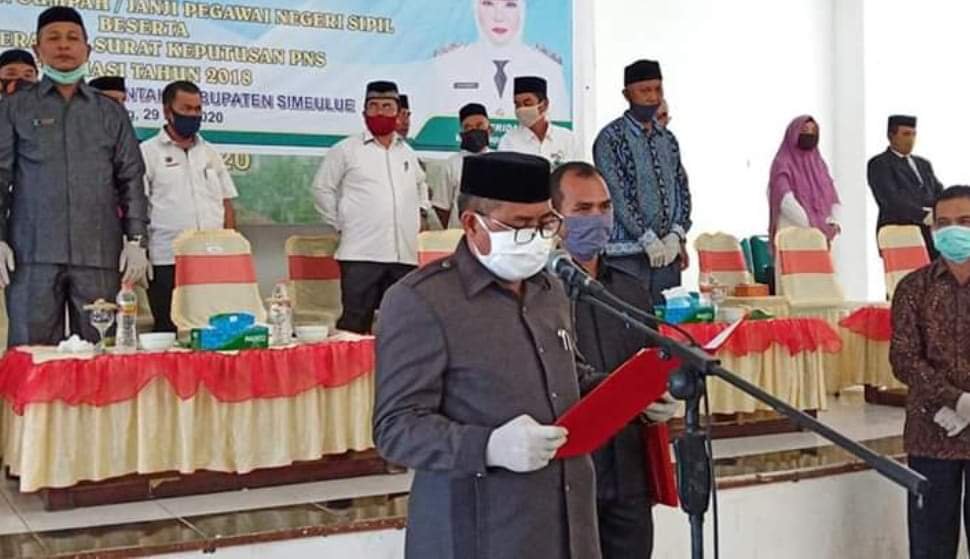 Pelantikan pejabat eselon di Kabupaten Simeulue kali ini sedikit berbeda dari tahun-tahun sebelumnya. Di tengah pandemi Covid-19 seluruh pejabat eselon yang akan dilantik, tetap mengedepankan Protokol kesehatan dengan memakai masker dan sarung tangan, sebagai upaya menjaga penyebaran virus corona.