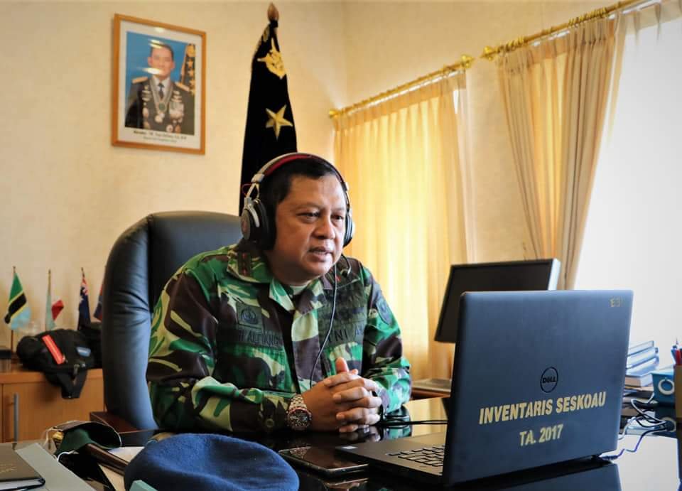 LEMBANG, JAWA BARAT—-Melalui telekonferensi, Komandan Seskoau Marsda TNI Henri Alfiandi memimpin rapat evaluasi pendidikan Sekolah Staf Angkatan Udara (Sesau) Angkatan Ke-13 di Mako Seskoau, Lembang, Kamis (14/5/2020), yang turut diikuti secara daring oleh Wadan Seskoau Marsma TNI Jemi Trisonjaya, M.Tr (Han)., Kadisdikau, Kadisminpersau, Wadan Puspomau, Aspers Korpaskhas atau yang mewakili,  para pejabat pembina profesi di jajaran Mabesau, serta para Direktur, Kepala Departemen, Dosen, Perwira penuntun di lingkungan Seskoau.