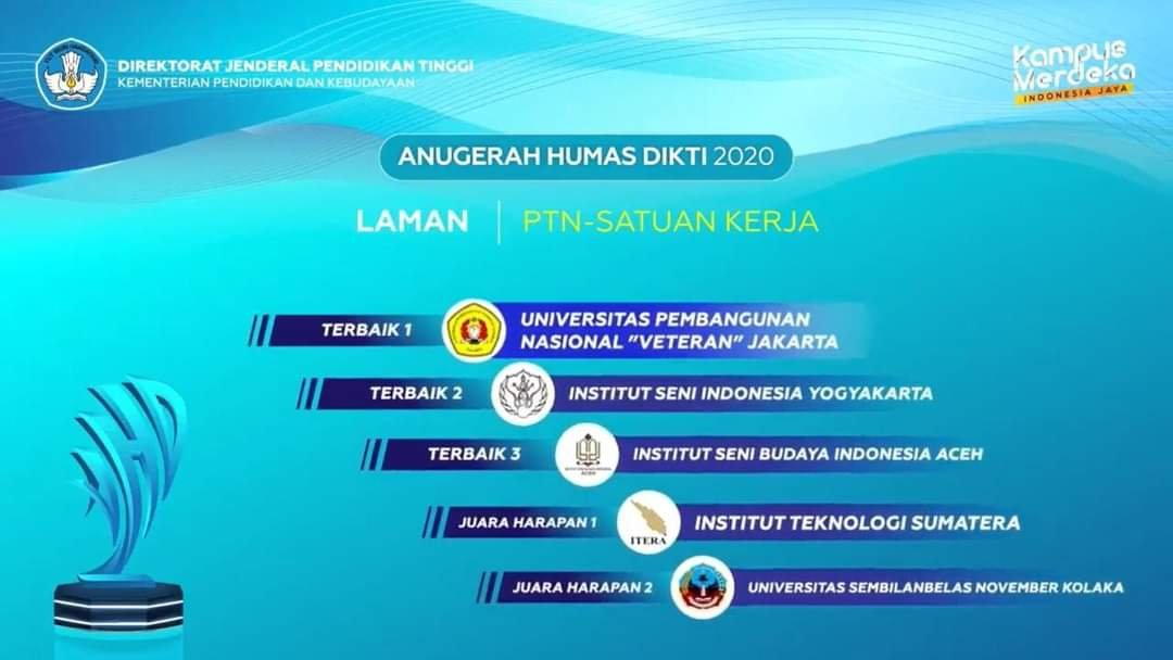 Penghargaan ini diumumkan melalui Webinar Capaian Kinerja, dan Anugerah DIKTI Tahun 2020 Serta Kinerja Tahun 2021, pada Rabu (23/12) malam yang diselenggarakan secara daring yang dibuka oleh Direktur Jenderal Pendidikan Tinggi Kementerian Pendidikan dan Kebudayaan.