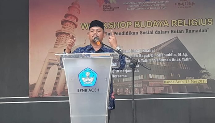 SANTERDAILY.COM | BANDA ACEH–Kadisdikbud Aceh Besar, Dr Silahuddin MAg menjadi penceramah pada kegiatan “Workshop Budaya Religi” yang dilaksanakan oleh Badan Pelestarian Nilai Budaya (BPNB) Aceh pada Jumat (24/5/2019).