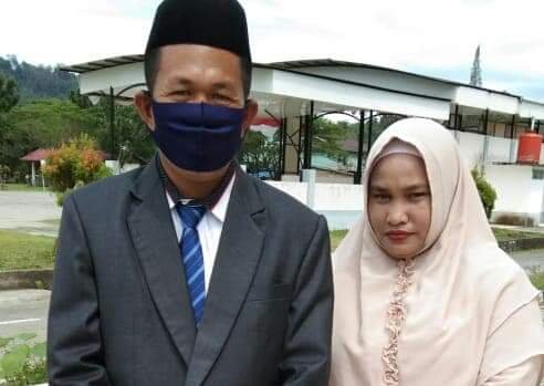 - Foto : Maswardi bersama isteri, saat setelah dilantik sebagai Kasi Sarpras Disdikbud Simeuleu, Jumat (29/5/2020).
