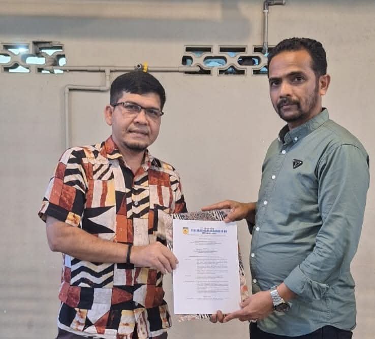 BANDA ACEH,KABARDAILY.COM – Ketua Umum Pengurus Provinsi (Pengprov) Federasi Olahraga Karate-Do Indonesia (Forki) Aceh, Sulaiman SE menyerahkan SK Pengurus Forki Aceh Selatan periode 2024-2028, Senin 16 Desember di Banda Aceh.