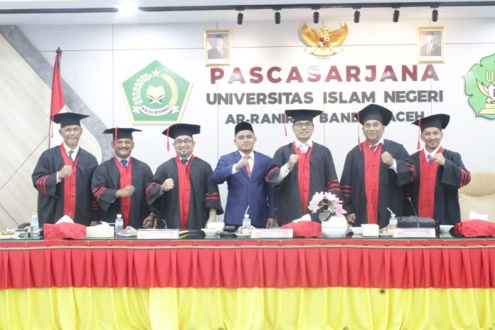 Gelar doktor tersebut resmi diraih setelah Muhammad Rizki sukses mempertahankan disertasinya dalam Sidang Promosi Doktor yang dilaksanakan pada Selasa, 23 Desember 2025. Sidang akademik bergengsi ini dipimpin langsung oleh Prof. Dr. Mujiburrahman, M.Ag., selaku Ketua Sidang Promosi Doktor yang juga menjabat sebagai Rektor UIN Ar-Raniry Banda Aceh. Adapun jajaran tim penguji terdiri dari para akademisi terkemuka, yakni Prof. Dr. T. Zulfikar, M.Ed., Dr. Jasafat, M.A., Dr. Sabirin, S.Sos.I., M.Si., Dr. Silahuddin, M.Ag., serta Prof. Dr. Mustanir Yahya, M.Sc.