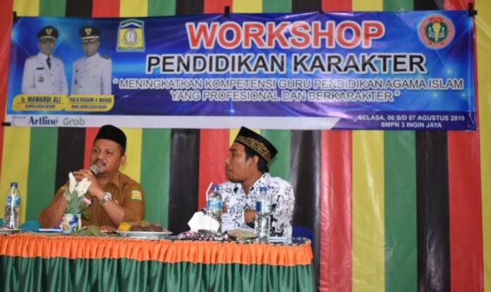 Workshop Pendidikan Karakter bagi guru PAI tersebut mengambil tema “Meningkatkan Kompetensi Guru Pendidikan Agama Islam Yang Profesional dan Berkarakter”, dibuka langsung oleh Kadisdikbud Aceh Besar, pada Selasa (6/8/2019) dan sekaligus menjadi narasumber.