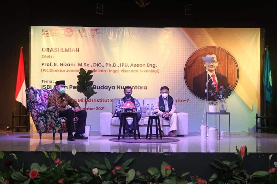 Institut Seni Budaya Indonesia (ISBI) Aceh dalam memperingati milad yang ke-7 tahun 2021 menggelar orasi ilmiah. Orasi ilmiah yang digelar di gedung aula pertunjukan ISBI Aceh, Minggu (14/11/2021), dengan tema “ISBI Aceh sebagai Perekat Budaya Nusantara” menghadirkan pembicara Plt. Direktur Jenderal Pendidikan Tinggi, Riset dan Teknologi PROF NIZAM, M.SC,. DIC.M Ph.D., IPU. Asean Eng.