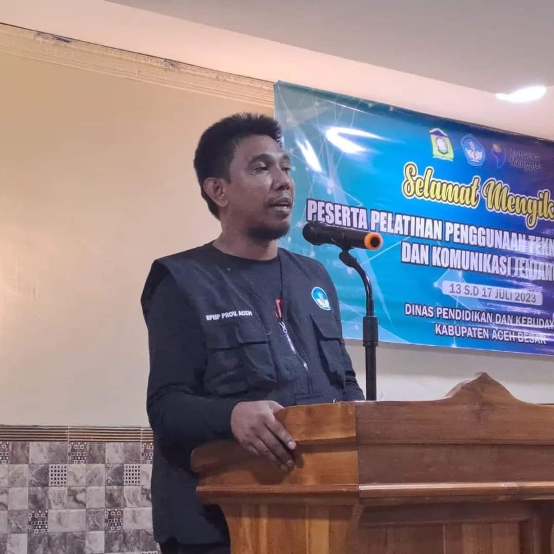 Hal itu disampaikan plt Kadisdikbud Aceh Besar, Agus Jumaidi MPd saat membuka pelatihan penggunaan Teknologi Informasi dan Komunikasi (TIK) jenjang SD Tahun 2023, Kamis 13 Juli 2023 malam di Hotel Hijrah Aceh Besar.