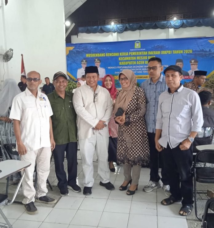 KOTA JANTHO,KABARDAILY.COM – Pelaksana Tugas (Plt) Sekdakab Aceh Besar Bahrul Jamil S.Sos M.Si membuka Musrenbang Rencana Kerja Pemerintah Daerah (RKPD) tahun 2026 di Kecamatan Mesjid Raya, Jumat (14/2/2025). Hadir dalam kesempatan itu, anggota DPRK Firdaus Armia dan Syahrizal, pejabat OPD, Muspika, para keuchik, ulama, dan tokoh-tokoh masyarakat.