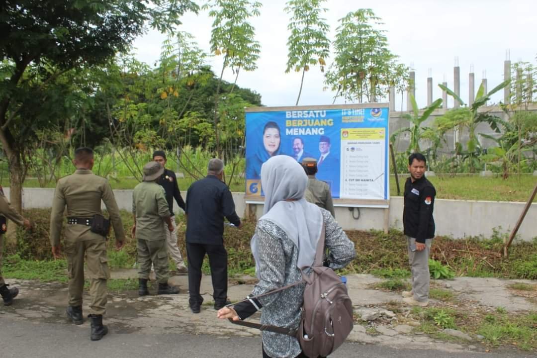 Giat Penertiban APK dipimpin langsung oleh Kasatpol PP dan WH Kabupaten Aceh Jaya didampingi oleh Ketua dan Anggota Panwaslih Aceh Jaya