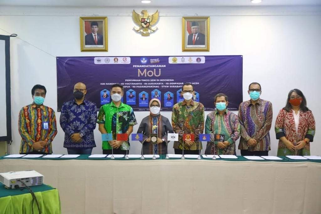 Jakarta – Sejumlah Perguruan Tinggi Seni yang tergabung dalam Badan Kerjasama Perguruan Tinggi Seni Indonesia (BKS-PTSI) melakukan penandatanganan kerjasama dalam penguatan implementasi Program Kampus Merdeka yang dicanangkan Menteri Pendidikan dan Kebudayaan (Dikbud).