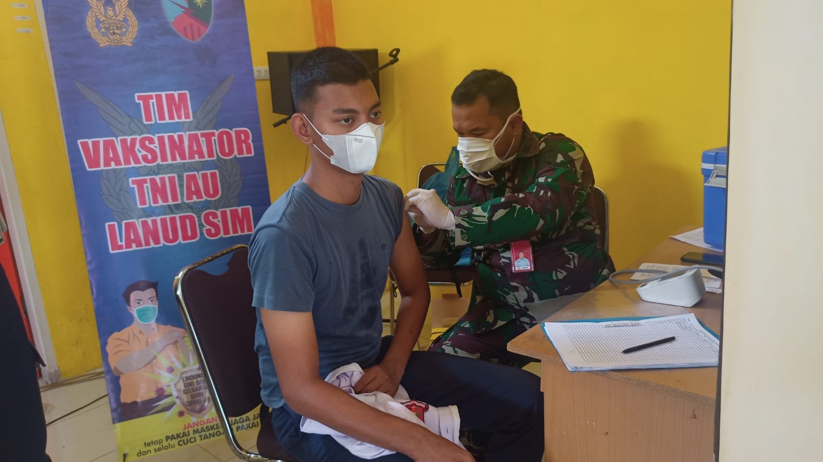 Satgas covid 19 lanud sim masih gelar serbuan vaksin di aula kantor camat blang bintang