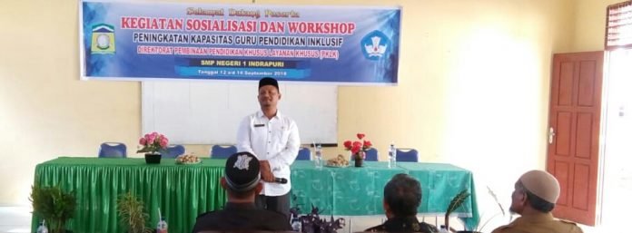 Hal tersebut disampaikan Silahuddin saat membuka acara sosialisasi dan workshop peningkatan kapasitas guru sekolah inklusif di SMPN 1 Indrapuri, rabu (12/09/2018).