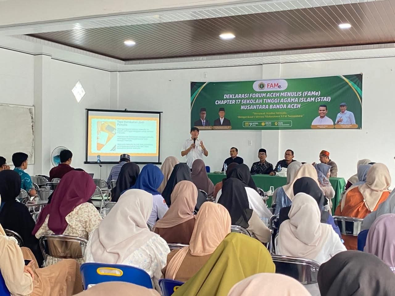 Kegiatan tersebut dibuka oleh Ketua STAI Nusantara, Dr Dicky Wirianto SPdI MPd mengatakan deklarasi Forum Aceh Menulis (FAMe) menjadi peluang besar untuk giat menulis, terutama bagi mahasiswa. Menulis merupakan aktivitas penting karena dapat meningkatkan karier sekaligus personal branding.