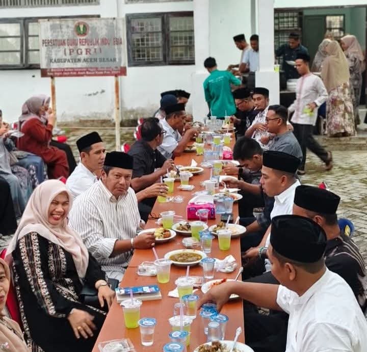 KABARDAILY.COM,JANTHO – Sebagai wujud kebersamaan di bulan ramadan yang penuh berkah ini, PGRI Aceh Besar menggelar buka puasa bersama yang dihadiri ratusan guru, kepala sekolah, tokoh pemerintahan hingga akademisi serta anggota Dewan, pada Sabtu 14 Maret 2026 di Gedung Sekretariat PGRI Aceh Besar.